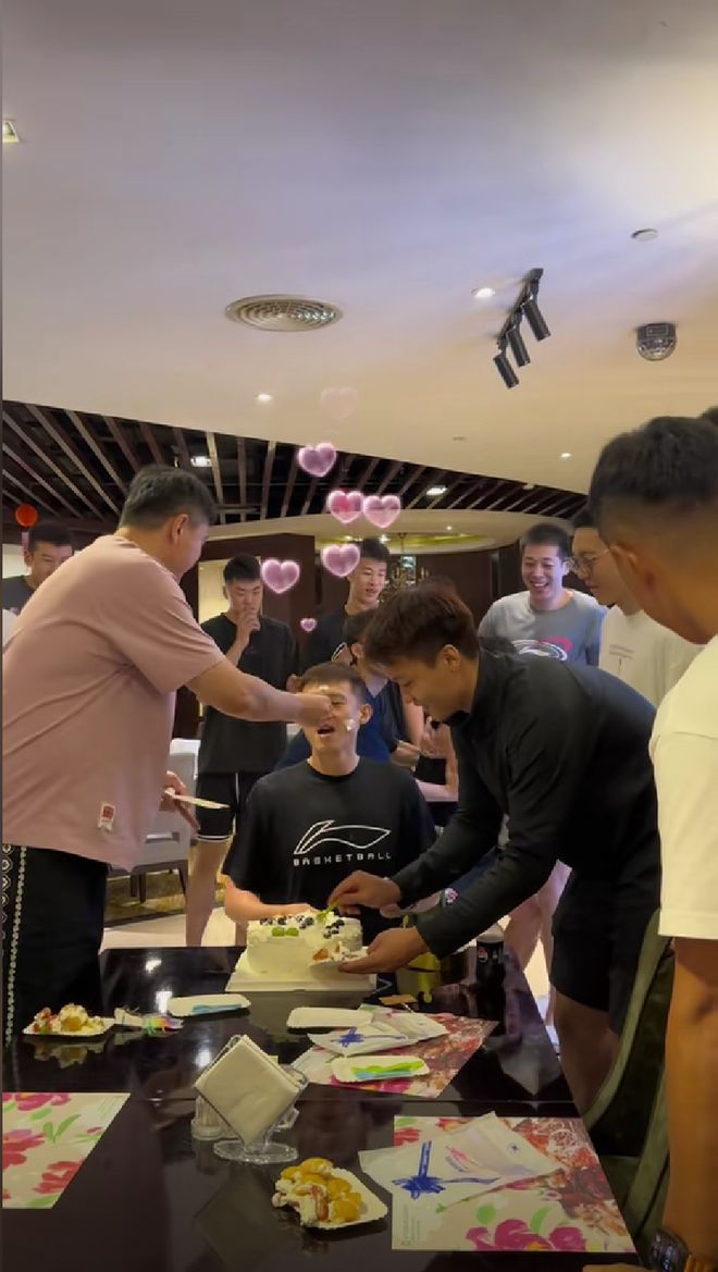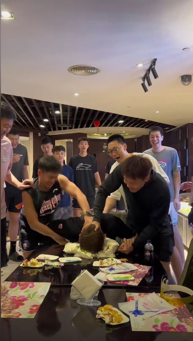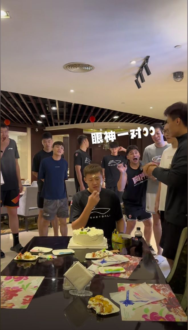 老六!杜锋率广东队为队长周鹏庆生,赵睿联手训练师拍蛋糕得意大笑