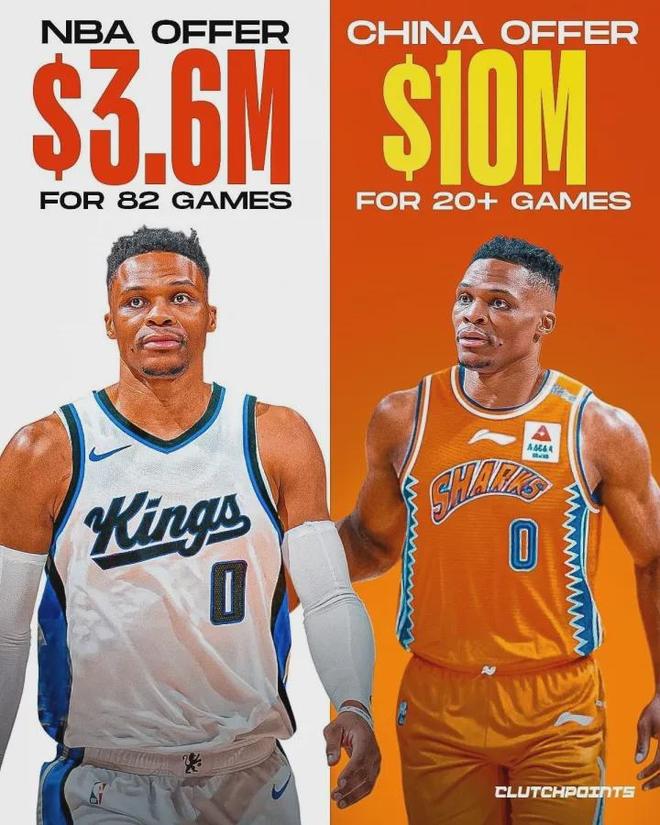北京时间10月15日,当36岁的威少至今在NBA未能找到工作,近期屡屡有美国自媒体编造CBA报价威少的谣言,尤其是传言给威少开出半赛季1000万-1400万美元的报价。如今针对如此离谱的